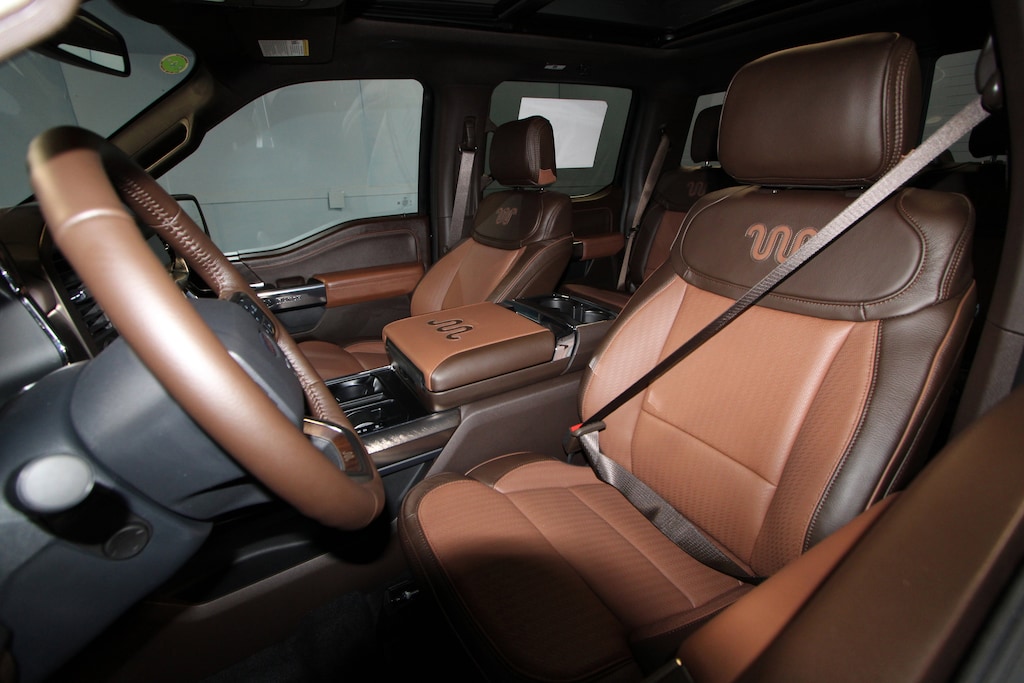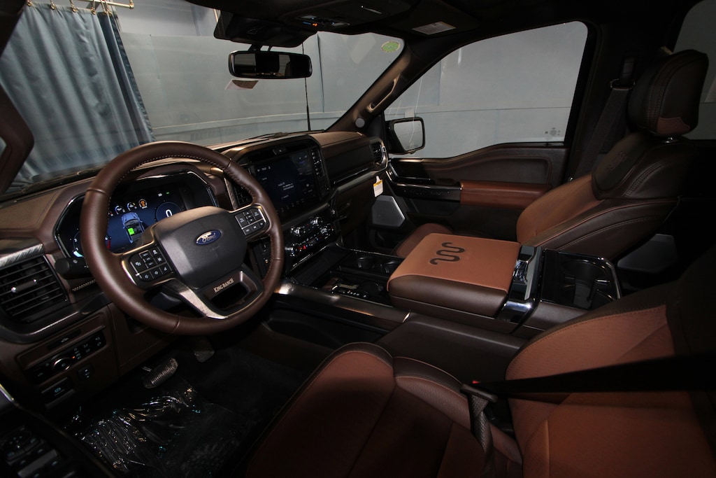 4WD, 4-Wheel Disc Brakes, 8 Speakers, ABS brakes, Adjustable pedals, Air Conditioning, Alloy wheels, AM/FM radio: SiriusXM with 360L, Auto High-beam Headlights, Auto tilt-away steering wheel, Auto-dimming door mirrors, Auto-dimming Rear-View mirror, Automatic temperature control, Brake assist, Chrome wheels, Compass, Delay-off headlights, Driver door bin, Driver vanity mirror, Dual front impact airbags, Dual front side impact airbags, Electronic Locking with 3.55 Axle Ratio, Electronic Stability Control, Emergency communication system: SYNC 4 911 Assist, Equipment Group 601A High, Ford Connectivity Package (1-Year Included), Front anti-roll bar, Front Bucket Seats, Front Center Armrest, Front dual zone A/C, Front fog lights, Front reading lights, Front wheel independent suspension, Fully automatic headlights, Garage door transmitter, Genuine wood dashboard insert, GVWR: 7,400 lbs Payload Package, Heated door mirrors, Heated front seats, Heated rear seats, Heated steering wheel, Illuminated entry, Internet access capable: 5G Modem - Ford Connectivity Package, Leather steering wheel, Low tire pressure warning, Memory seat, Navigation system: Connected Navigation, Occupant sensing airbag, Outside temperature display, Overhead airbag, Overhead console, Panic alarm, Passenger door bin, Passenger vanity mirror, Pedal memory, Power door mirrors, Power driver seat, Power passenger seat, Power steering, Power windows, Radio data system, Radio: B&O Sound System by Bang and Olufsen, Rain sensing wipers, Rear reading lights, Rear seat center armrest, Rear step bumper, Rear window defroster, Remote keyless entry, Security system, Speed control, Split folding rear seat, Steering wheel memory, Steering wheel mounted audio controls, SYNC 4 with Enhanced Voice Recognition, Tachometer, Telescoping steering wheel, Tilt steering wheel, Traction control, Trip computer, Turn signal indicator mirrors, Twin Panel Moonroof, Variably intermittent wipers, Ventilated front seats, Wheels: 20" Chrome-Like PVD, 4WD.