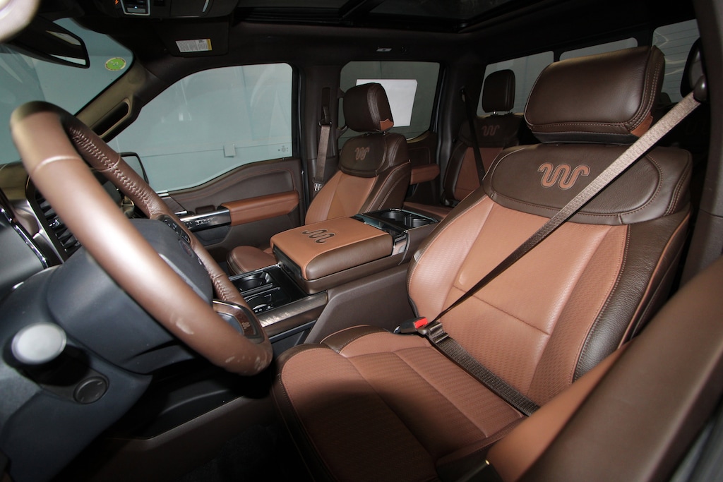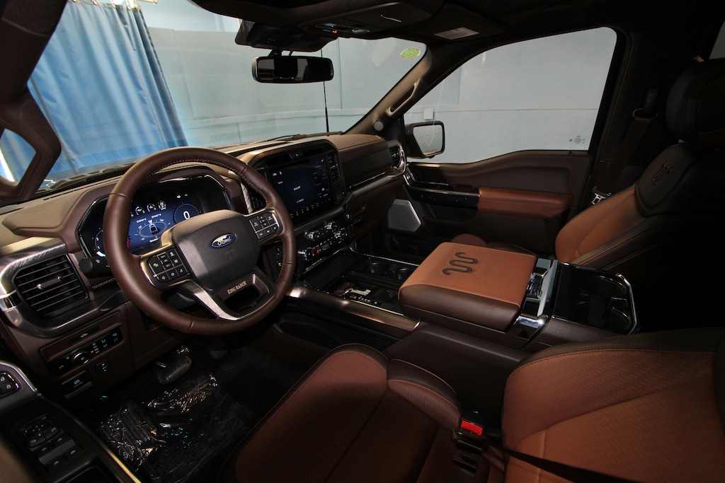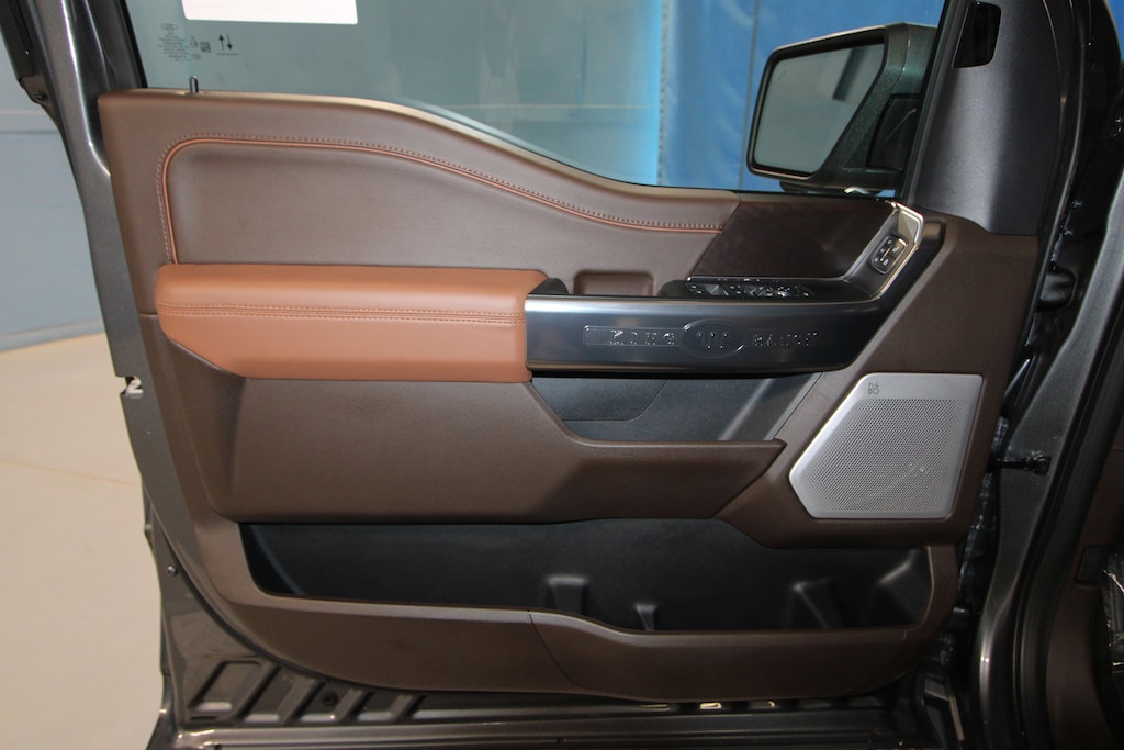 4WD, 4-Wheel Disc Brakes, 8 Speakers, ABS brakes, Adjustable pedals, Air Conditioning, Alloy wheels, AM/FM radio: SiriusXM with 360L, Auto High-beam Headlights, Auto tilt-away steering wheel, Auto-dimming door mirrors, Auto-dimming Rear-View mirror, Automatic temperature control, Brake assist, Chrome wheels, Compass, Delay-off headlights, Driver door bin, Driver vanity mirror, Dual front impact airbags, Dual front side impact airbags, Electronic Locking with 3.55 Axle Ratio, Electronic Stability Control, Emergency communication system: SYNC 4 911 Assist, Equipment Group 601A High, Ford Connectivity Package (1-Year Included), Front anti-roll bar, Front Bucket Seats, Front Center Armrest, Front dual zone A/C, Front fog lights, Front reading lights, Front wheel independent suspension, Fully automatic headlights, Garage door transmitter, Genuine wood dashboard insert, GVWR: 7,400 lbs Payload Package, Heated door mirrors, Heated front seats, Heated rear seats, Heated steering wheel, Illuminated entry, Internet access capable: 5G Modem - Ford Connectivity Package, Leather steering wheel, Low tire pressure warning, Memory seat, Navigation system: Connected Navigation, Occupant sensing airbag, Outside temperature display, Overhead airbag, Overhead console, Panic alarm, Passenger door bin, Passenger vanity mirror, Pedal memory, Power door mirrors, Power driver seat, Power passenger seat, Power steering, Power windows, Radio data system, Radio: B&O Sound System by Bang and Olufsen, Rain sensing wipers, Rear reading lights, Rear seat center armrest, Rear step bumper, Rear window defroster, Remote keyless entry, Security system, Speed control, Split folding rear seat, Steering wheel memory, Steering wheel mounted audio controls, SYNC 4 with Enhanced Voice Recognition, Tachometer, Telescoping steering wheel, Tilt steering wheel, Traction control, Trip computer, Turn signal indicator mirrors, Twin Panel Moonroof, Variably intermittent wipers, Ventilated front seats, Wheels: 20" Chrome-Like PVD, 4WD.