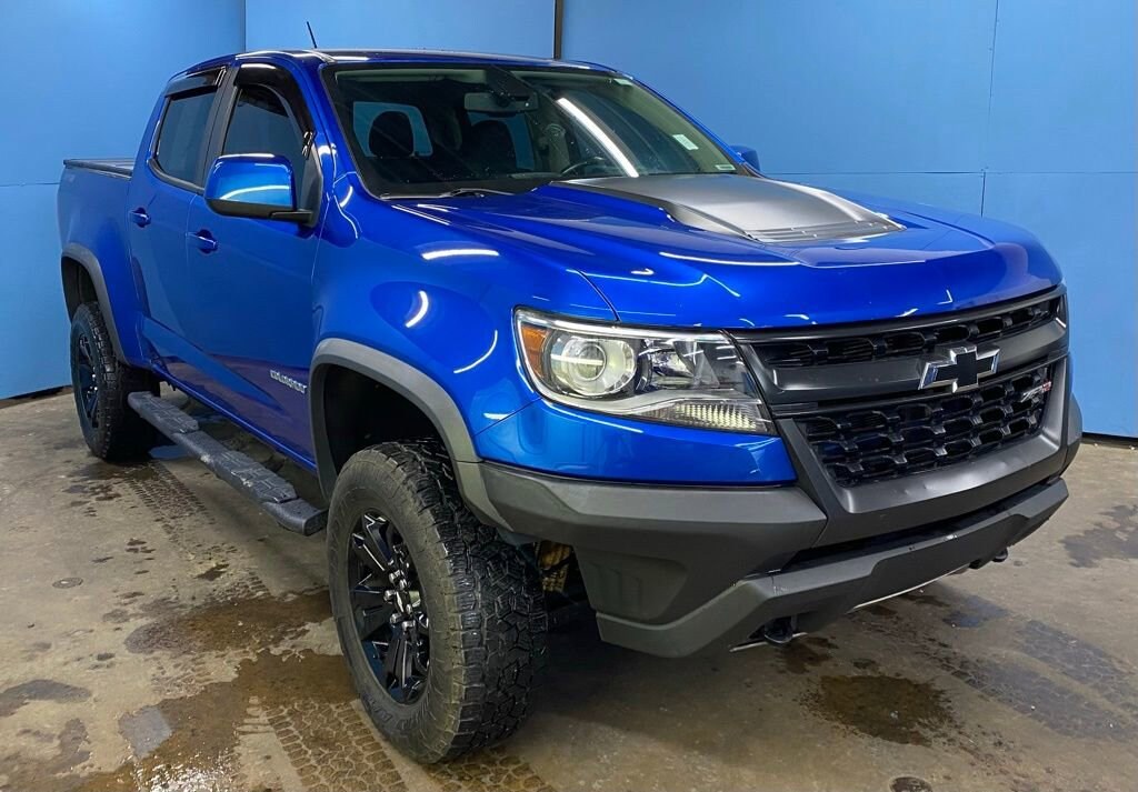 2018 Chevrolet Colorado ZR2 We want you to shop confidently for your next used car at D-Patrick Lebanon Ford and We make it EASY! Buy this used vehicle 100% online or in-store, EASY. Saving time at the dealership, EASY! Financing, EASY! Get pre-approved online or in-store with one of our many lenders, EASY. Finding the car you love at the price you want, EASY! We also offer extended service plans, vehicle protection plans, and offer a free to you CarFax vehicle history report. *Prices listed do not include a $250 documentation fee, applicable tax, title, tags, license, or $195 service and preparation. All pricing, vehicle information, and features (such as accessories and color) are believed to be accurate, but we do not warrant or guarantee such accuracy. The prices shown above may vary from region to region, and incentives are subject to change. Some offers listed may not be available to all customers. All online sale commitments are subject to confirmation of continued availability of vehicle. Once availability is confirmed, online sale agreement becomes binding upon the parties. If any information found on the website is thought to be erroneous, please verify information with a customer service representative. See dealer for full details. Looking to sell your current vehicle? We buy cars for cash. 4WD, 17" x 8" Aluminum Wheels, 3.42 Rear Axle Ratio, 4-Way Power Front Passenger Seat Adjuster, 4-Wheel Disc Brakes, 6 Speakers, 6-Speaker Audio System Feature, ABS brakes, Air Conditioning, Alloy wheels, AM/FM radio: SiriusXM, Apple CarPlay, Auto-dimming Rear-View mirror, Automatic temperature control, Black Bowtie Emblem Package (LPO), Black Rear Bumpers, Black Spray-On Bedliner w/Chevrolet Logo, Bose Premium 7-Speaker Audio System Feature, Compass, Delay-off headlights, Driver 4-Way Power Seat Adjuster, Driver door bin, Driver vanity mirror, Driver-Selectable Full-Locking Front Differential, Driver-Selectable Full-Locking Rear Differential, Dual front impact airbags, Dual front side impact airbags, Electronic Stability Control, Exterior Parking Camera Rear, Front anti-roll bar, Front Bucket Seats, Front Center Armrest, Front fog lights, Front reading lights, Front wheel independent suspension, Fully automatic headlights, Heated door mirrors, Heated Driver & Front Passenger Seats, Heated front seats, Heavy-Duty Trailering Package, Hitch Guidance, Illuminated entry, Integrated Trailer Brake Controller, Leather-Appointed Seat Trim, Low tire pressure warning, Occupant sensing airbag, Off-Road Appearance Package, Off-Road Lights (LPO), Off-Road Sport Bar (LPO) (SCU), Outside temperature display, Overhead airbag, Overhead console, Panic alarm, Passenger door bin, Passenger vanity mirror, Power door mirrors, Power Driver Lumbar Control Seat Adjuster, Power driver seat, Power Passenger Lumbar Control Seat Adjuster, Power passenger seat, Power steering, Power windows, Preferred Equipment Group 4ZR, Premium audio system: Chevrolet MyLink, Radio data system, Radio: AM/FM Stereo w/8" Diagonal Color Touch Screen, Rear reading lights, Rear seat center armrest, Rear step bumper, Rear window defroster, Remote keyless entry, Security system, SiriusXM Satellite Radio, Speed control, Speed-sensing steering, Steering wheel mounted audio controls, Tachometer, Telescoping steering wheel, Tilt steering wheel, Tow/Haul Mode, Traction control, Trip computer, Variably intermittent wipers, Wheel Locks, Wheels: 17" x 8" Gloss Black Aluminum, ZR2 Dusk Special Edition, 4WD. 4D Crew Cab ZR2 8-Speed Automatic V6 4WD Kinetic Blue Metallic CALL US TODAY BEFORE THIS ONE GETS AWAY-- (765) 204-6248 or shop online at www.dpatricklebanonford.com.